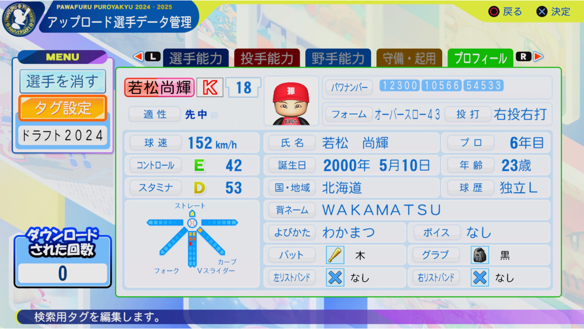 ・スタミナD53:先発時は7回を投げ切るスタミナがある。